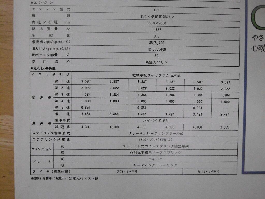 昭和52年9月 1200cc→1300ccで53年排出ガス規制適合