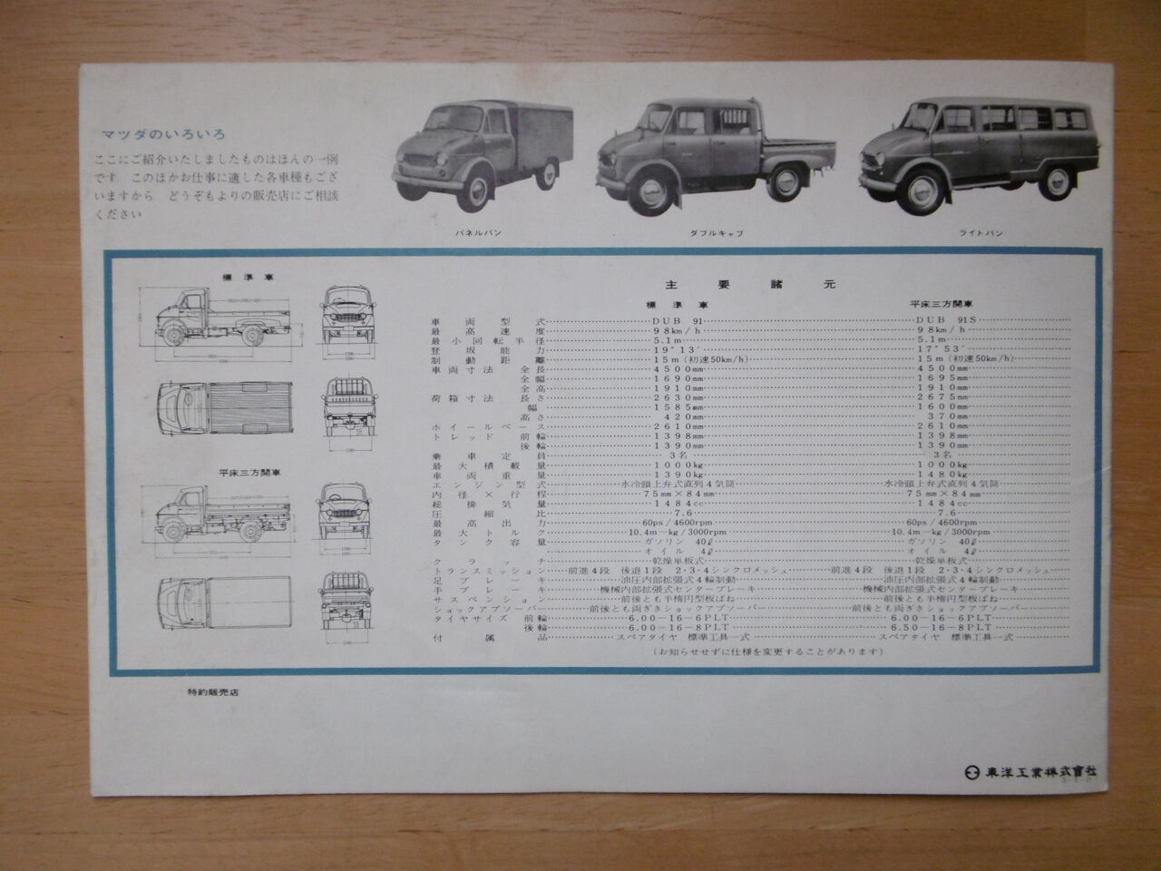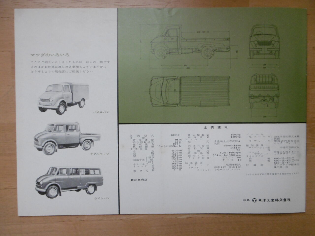 エンジンは1500ccで1トン積みと1,5トン積みの2種でした。
