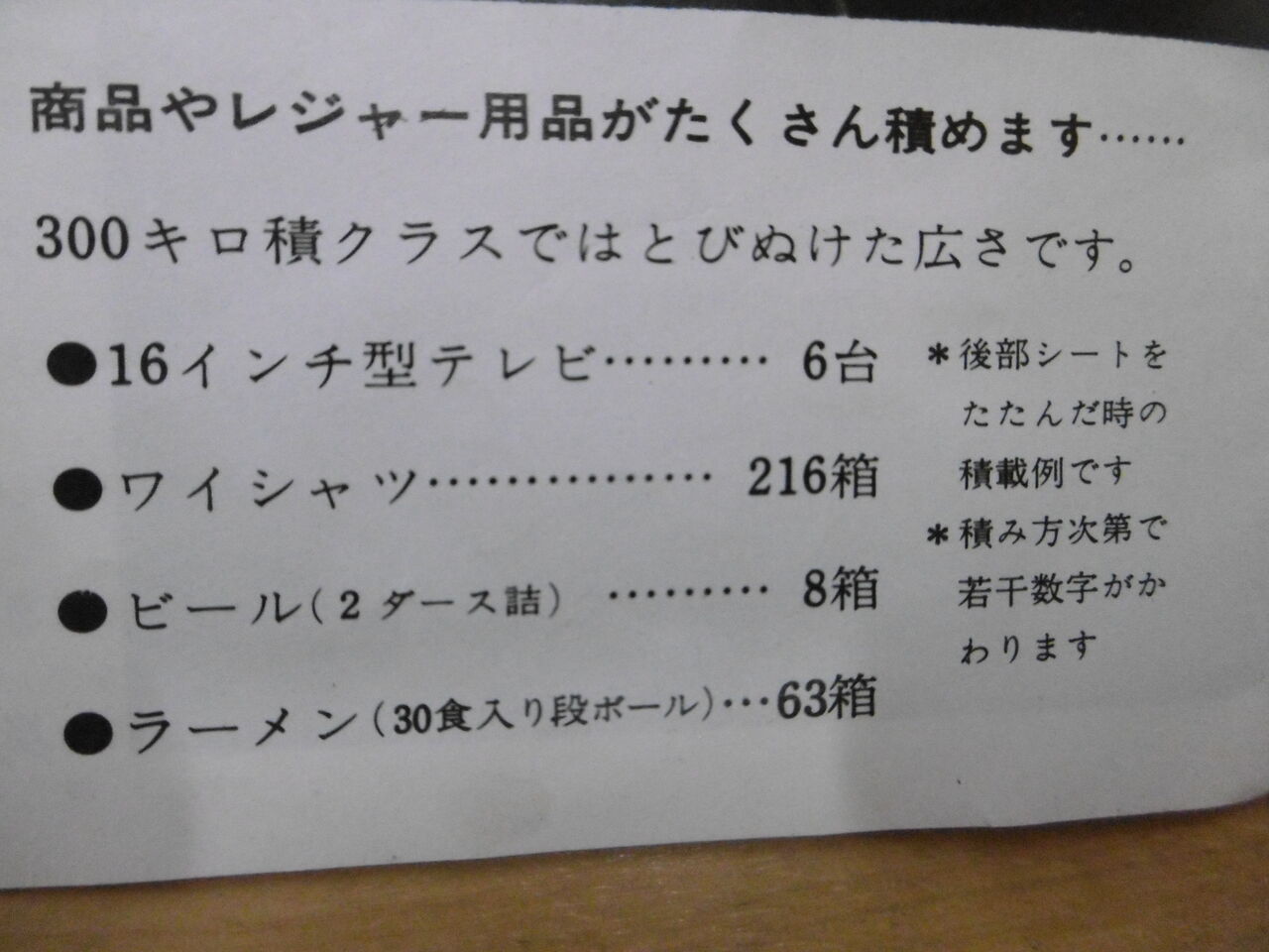 四人乗りで200kgの荷物を、後ろの座席を折りたたむと350kgの荷物を積めます。