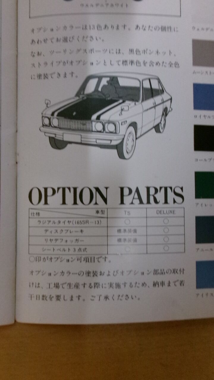 右ページは車種別の使用比較 ボディーカラー見本