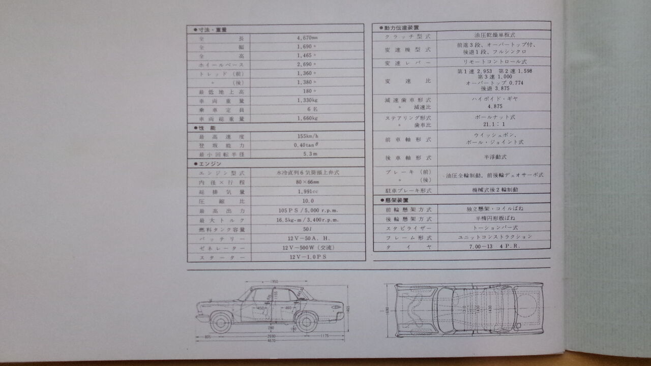 当時の2000cc級国産車で最も長い4,67Mの全長。