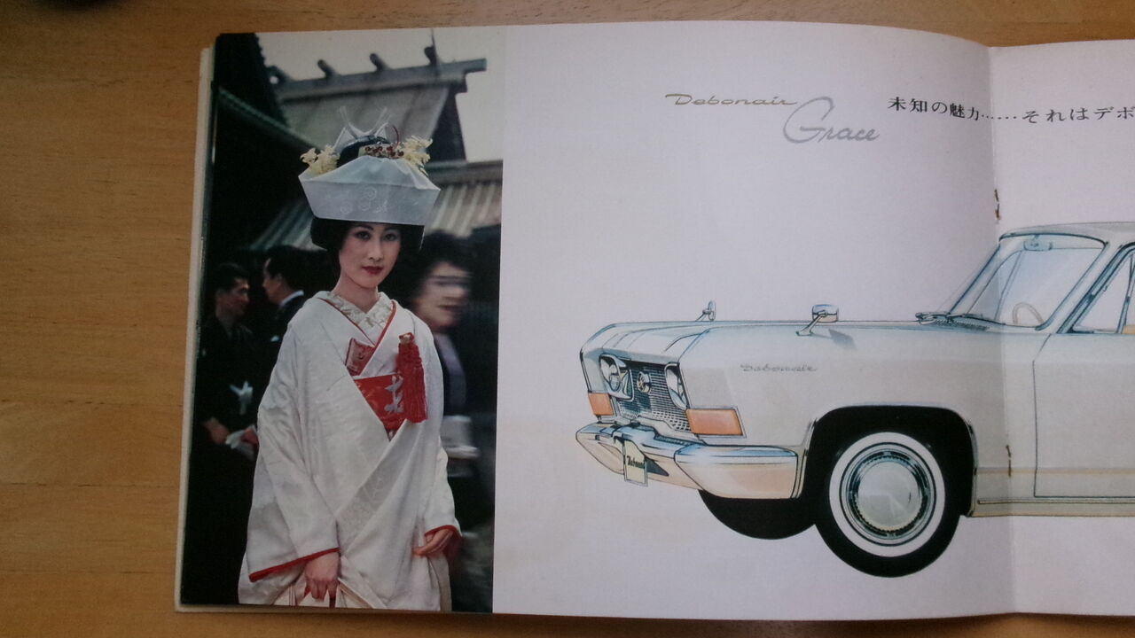 白いドレスに白い長い手袋。当時の高級車カタログに