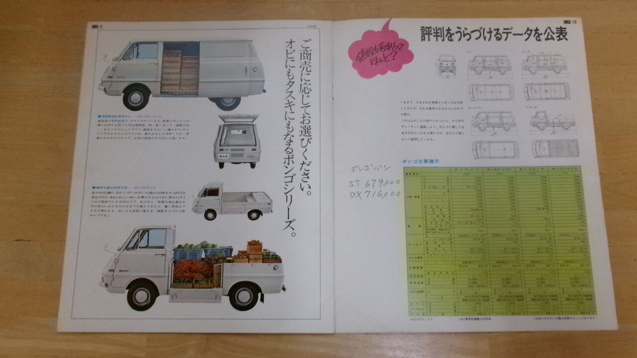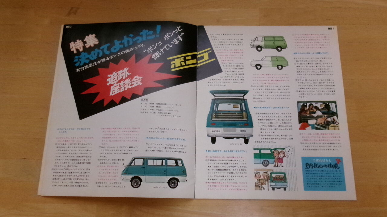 裏表紙は上段がボンゴ コーチ 下段がボンゴバン