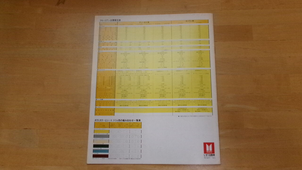 裏表紙は仕様書とボディーカラー見本