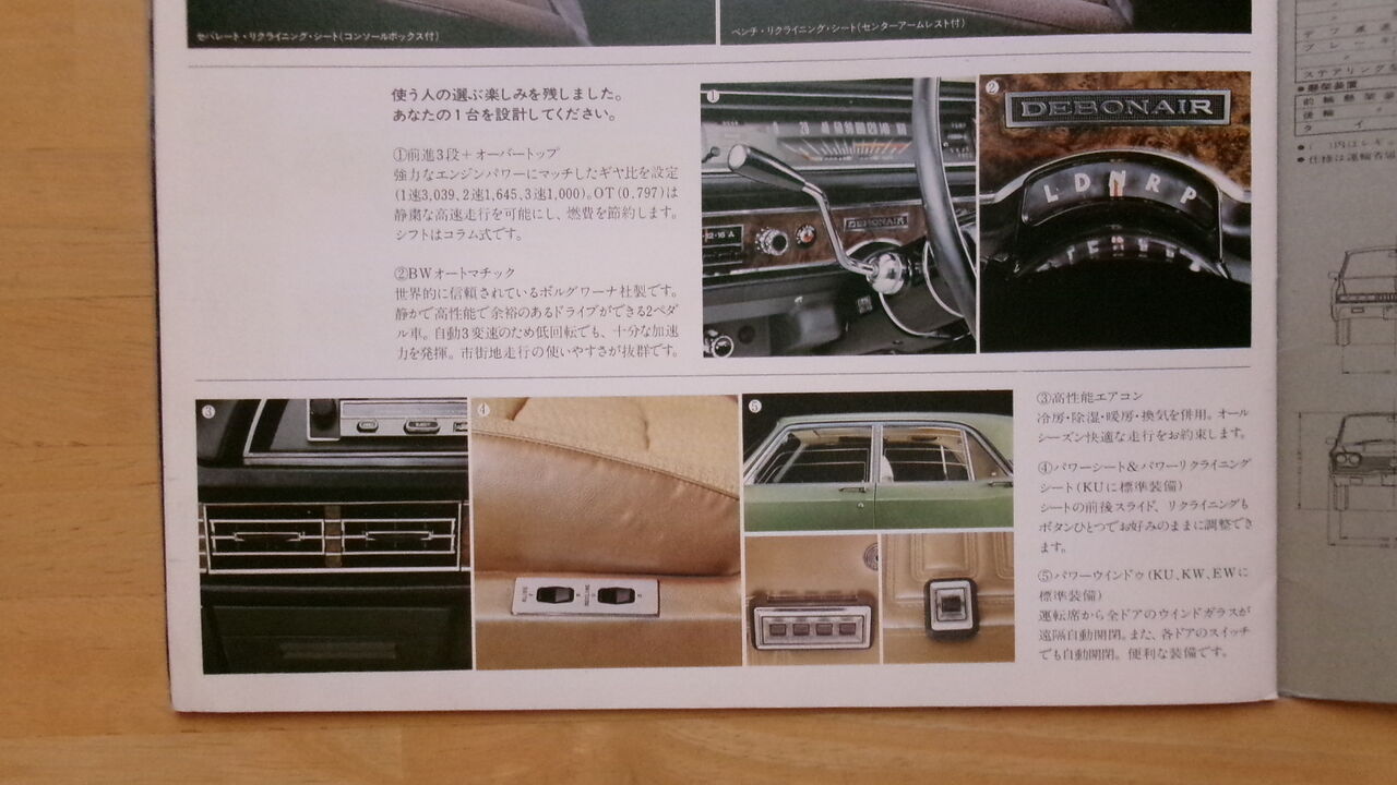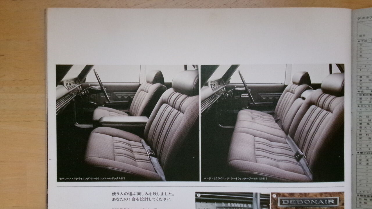 今回で初代デボネアのカタログは最終回となります。